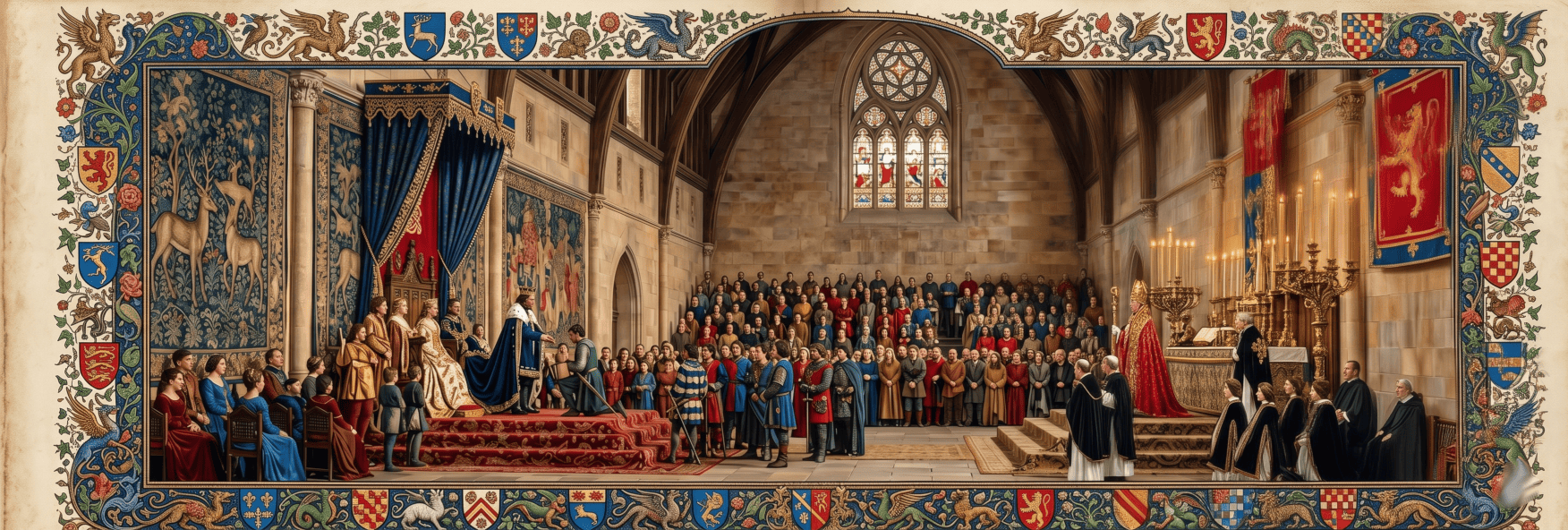 Afb. boven: Bewerkte versie van Willem Steelink (I), naar Lambertus Lingeman, 1865 – 1870. Rijksmuseum. Graaf Floris V sticht de orde van St. Jacob, 1290,