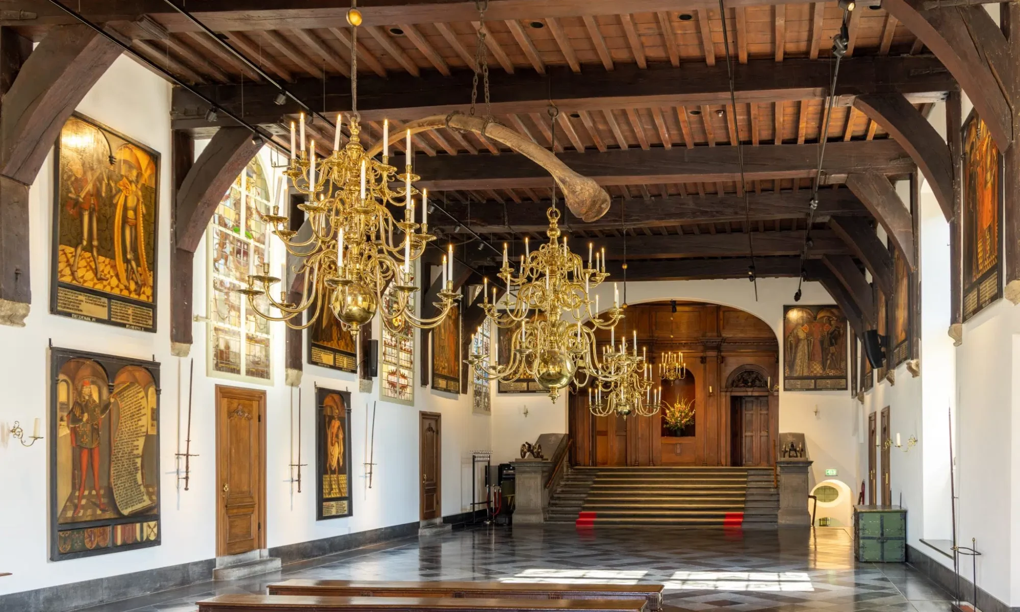 - Als eerste bezoeken wij het stadhuis. In de Gravenzaal hangt de beroemde verzameling van portretten van de graven van Holland. We bezoeken ook de kloostergangen. Gert Kol en Floris de Boer verzorgen de toelichting. Er valt heel wat over te vertellen!